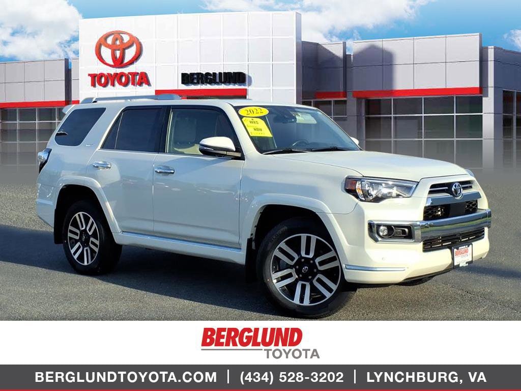 Discover an exceptional 2022 Toyota 4Runner Limited 4WD with the reliable 4.0L V6 gasoline engine now available in Lynchburg, VA. This rugged yet refined SUV combines off-road capability with premium comfort, making it the perfect choice for daily driving, weekend adventures, and everything in between. With Leather Seats, Navigation, Apple CarPlay, Back-Up Camera, and Rear Parking Sensors, the Limited trim delivers convenience and connectivity for every journey. From its proven V6 powertrain and 4WD traction to its spacious interior and elevated ride height, this Toyota 4Runner balances performance and practicality. The leather-appointed cabin and advanced infotainment system keep passengers comfortable and connected, while the navigation system helps you find the best routes near Lynchburg and beyond. Safety is enhanced with a Back-Up Camera and Rear Parking Sensors for confident maneuvering in tight spaces. Priced to move and positioned as the best price in the area, this 2022 Toyota 4Runner Limited presents outstanding value for anyone seeking a dependable, capable SUV. Located in Lynchburg, VA, this Toyota 4Runner is ready for immediate test drives don't miss the chance to own a versatile, feature-rich vehicle that's built to last. Contact us today to schedule a viewing and experience the Toyota 4Runner difference.